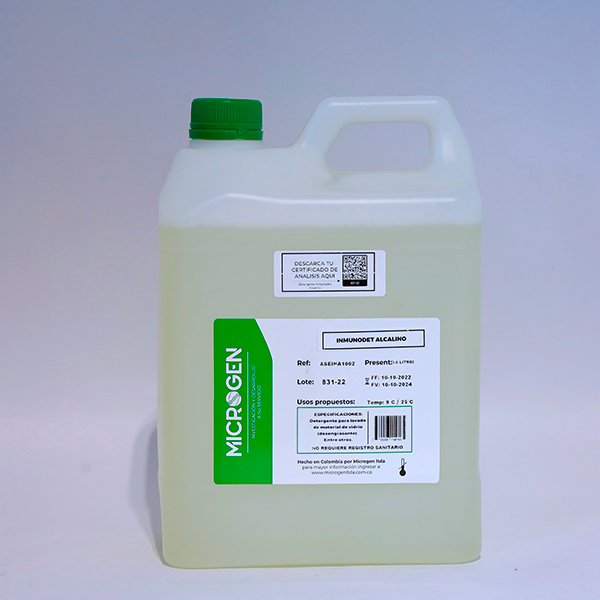 El inmunodet alcalino contiene compuestos como hidróxido de sodio, carbonatos y tensioactivos que ayudan a descomponer las partículas de suciedad. El mecanismo de acción se basa en la capacidad de los detergentes para emulsionar y solubilizar aceites y grasas, permitiendo que sean eliminados con facilidad durante el lavado.